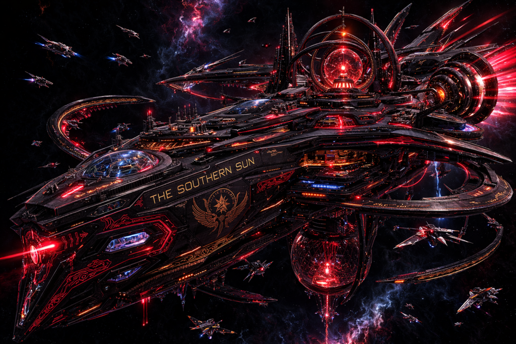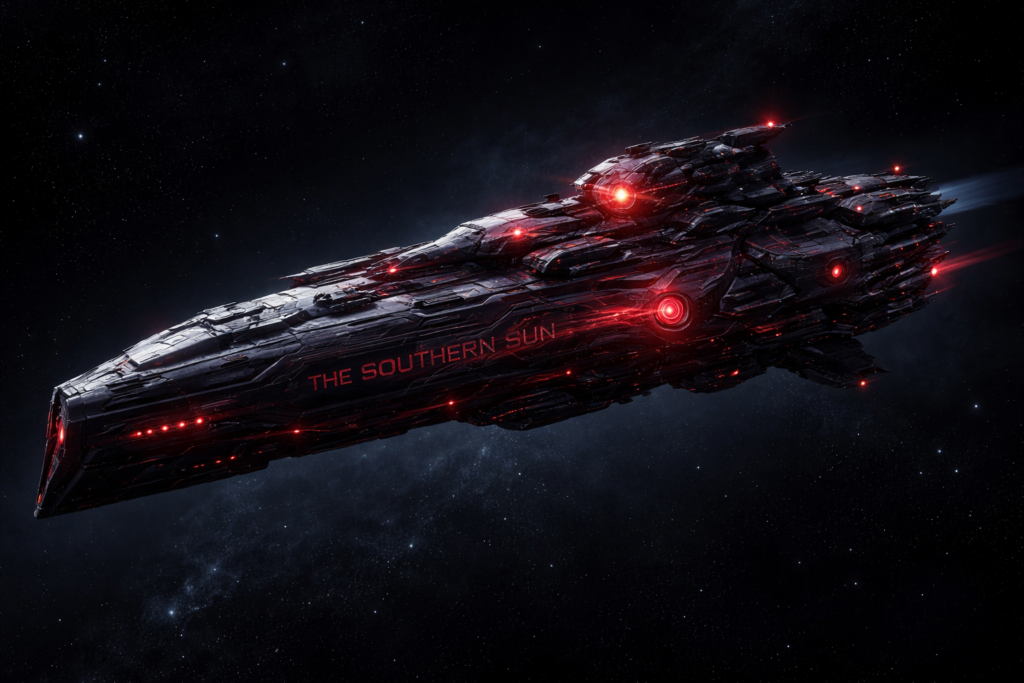 More than 30-years-ago now, during my short story phase, I created a strong character for a Science Fiction action Series: Captain Kasabian Valentine. Eventually, working around this character, a ship was created to fit both the story-line and Valentine’s Back-Story, it is called: THE SOUTHERN SUN.