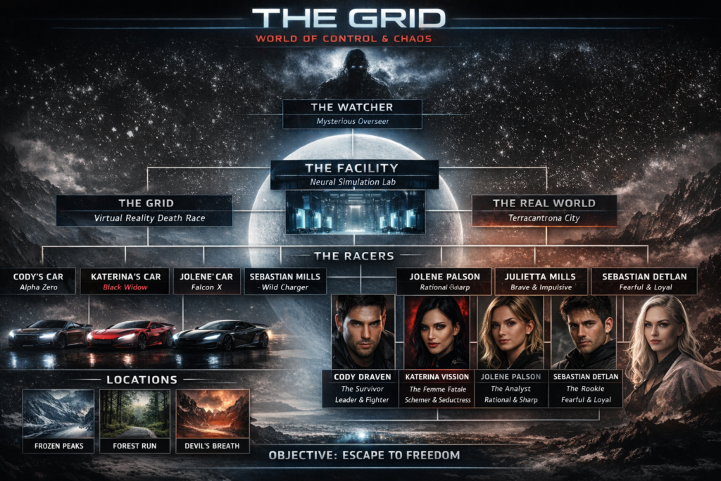Written under the intoxicating influence of Console and Experience, THE GRID 1.0 was first started back in the 90’s, when Speed, Skill and Endurance was key to those completing difficult odds and hair raising, if not heart-dropping impossible RACE COURSES… For Cody and his loyal fearless friends, the RACE FOR LIFE has already begun.